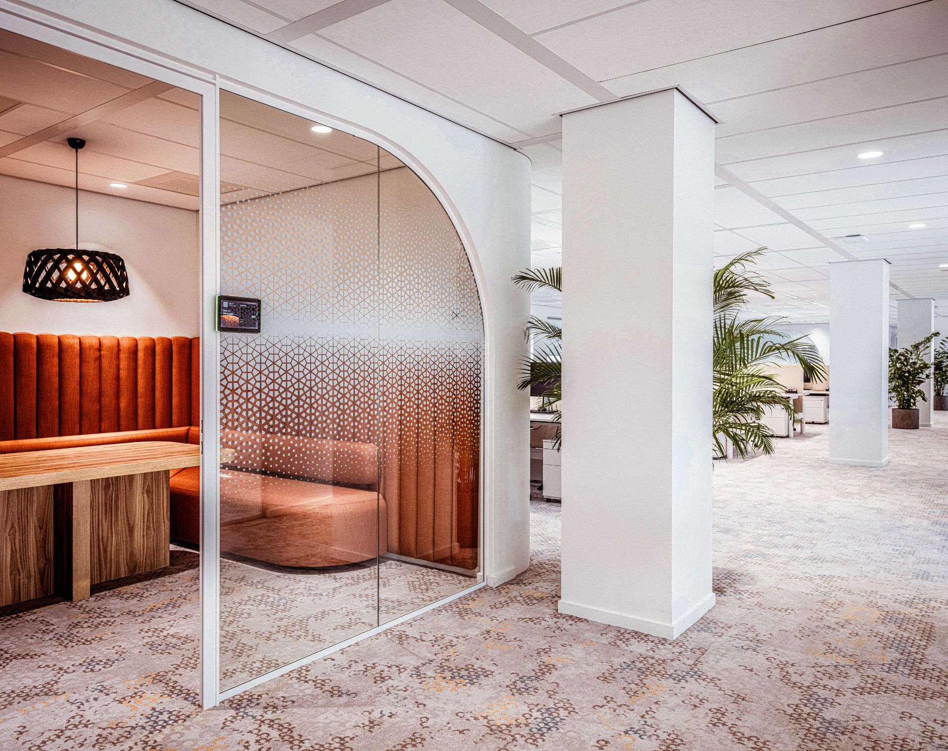 Plan Effect leistete hierzu einen wichtigen Beitrag mit der Doppelverglasungswand SERENITY und der Einfachverglasungswand GLASS-CONCEPT, beide ausgeführt mit gebogenen Ecken. Die runden Formen und transparenten Übergänge verstärken die offene, einladende Ausstrahlung des Interieurs.