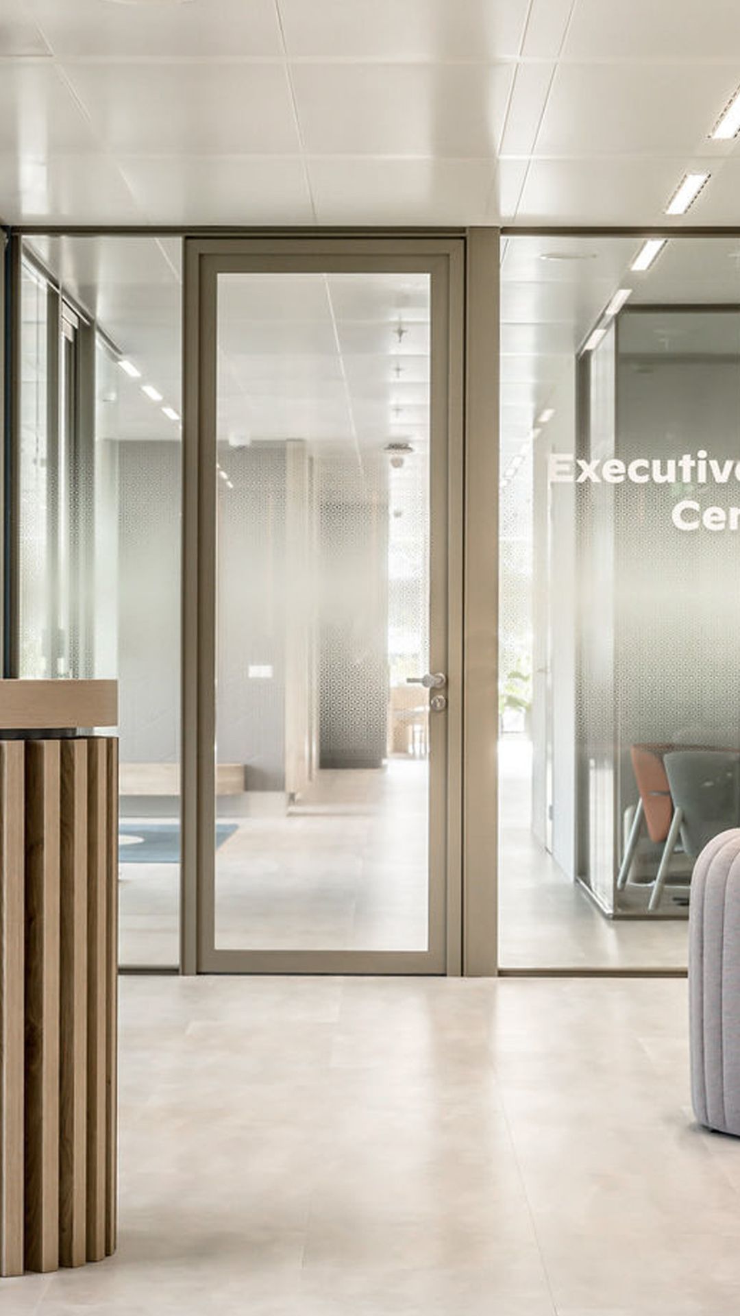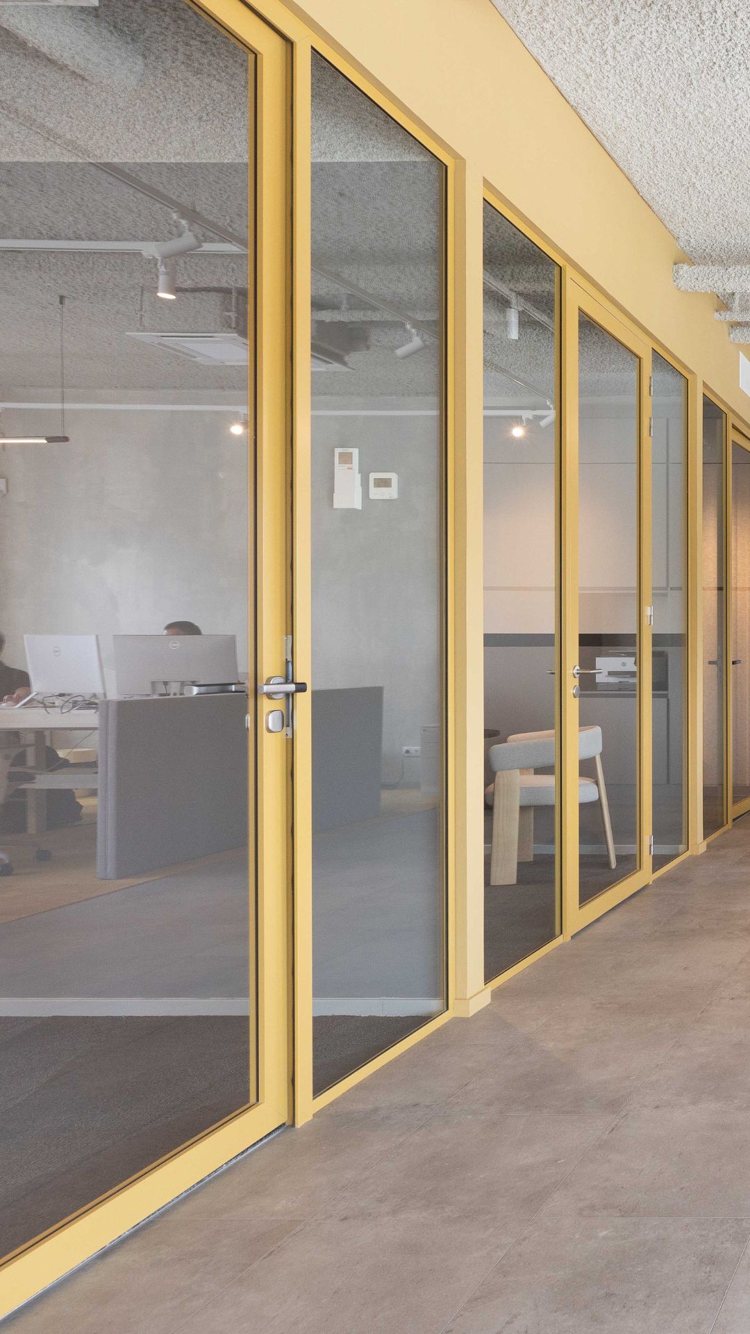 Die RAHMENTÜR ist in verschiedenen Ausführungen erhältlich, darunter Varianten mit Doppelverglasung, verdeckten Scharnieren, Absenkdichtung, Codeschloss und maßgefertigtem Beschlag. Für Bereiche, in denen eine breitere Durchgangsöffnung erforderlich ist, steht zudem eine doppelflügelige Version zur Verfügung. Damit eignet sich die RAHMENTÜR sowohl für repräsentative Eingänge als auch für funktionale Anwendungen in jeder Büroumgebung.