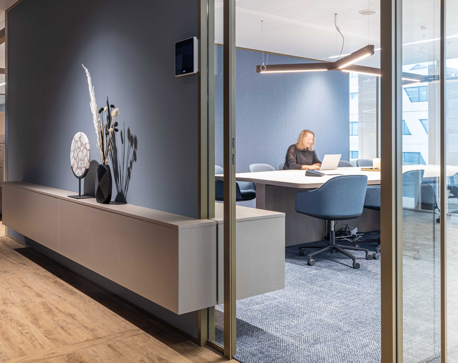 METAL-STUD ist unser geschlossenes Wandsystem, das eine glatte, nahtlose Wand bildet – ganz ohne den Einsatz einzelner Paneele. Dieses System wird vollständig maßgefertigt und vereint die Vorteile einer massiven Bauwand mit der gestalterischen Freiheit eines Systemwands.