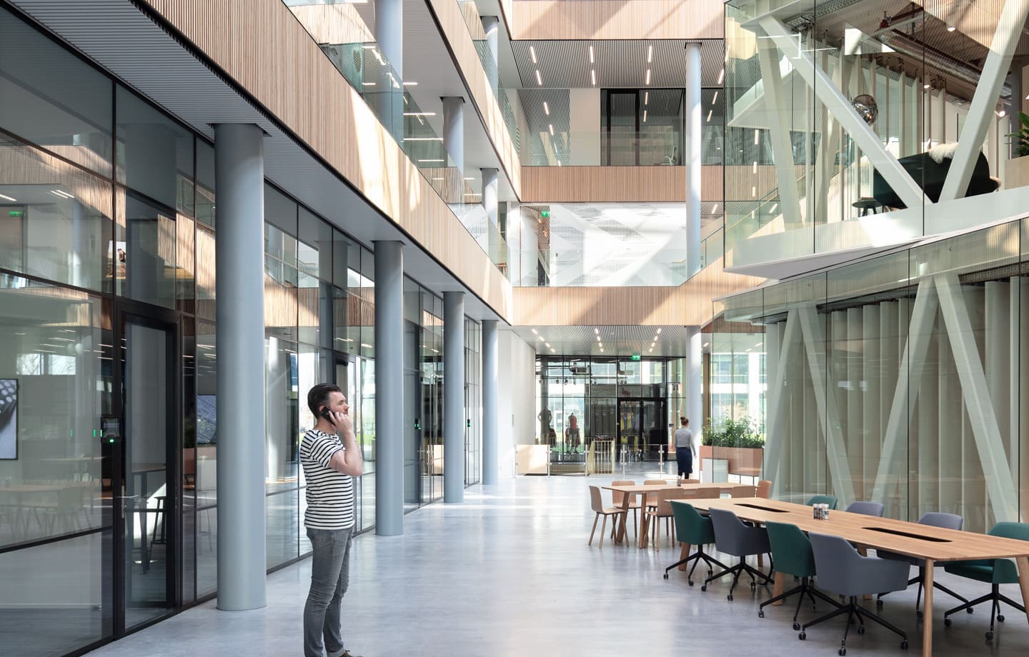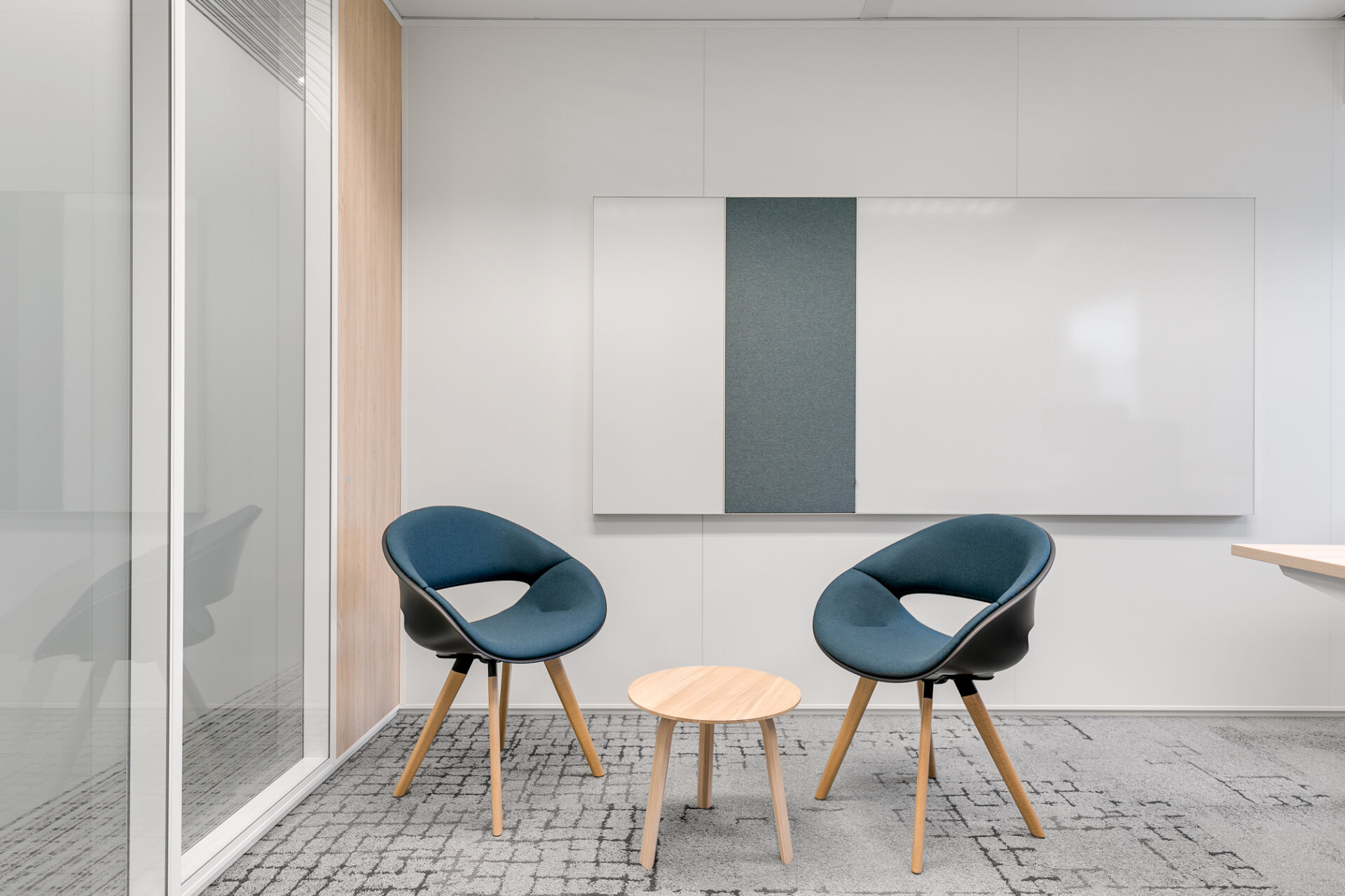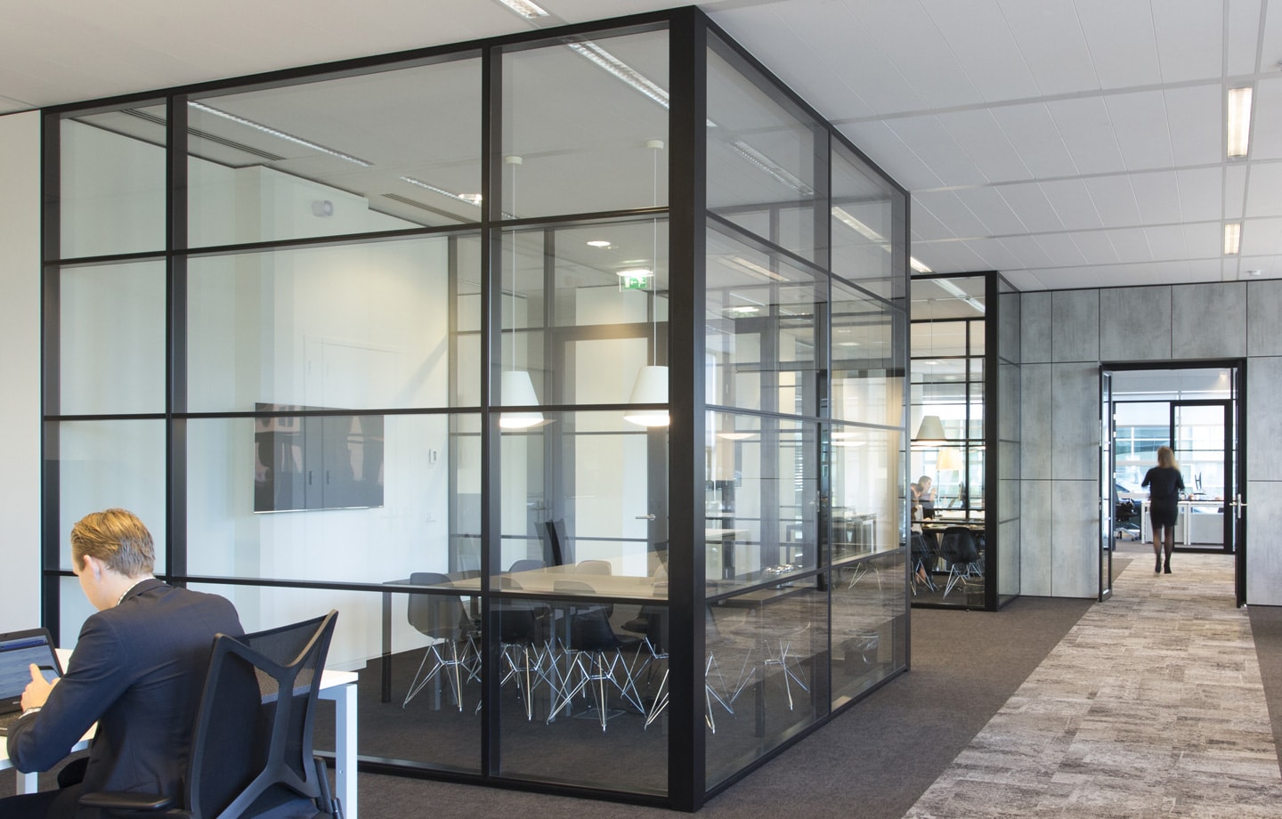 Durch die schalldämmenden Eigenschaften der Doppelglas-Kassetten ist MONOBLOC die perfekte Trennung zwischen Konzentrations- und Verkehrsbereichen – ohne Abstriche bei Ästhetik oder Transparenz. Die Felder können mit Glas oder geschlossenen Wandpaneelen ausgestattet werden. Damit lässt sich flexibel gestalten. Mit variablen Breiten von bis zu 2400 mm bleibt der gewünschte Rhythmus im Design erhalten.
