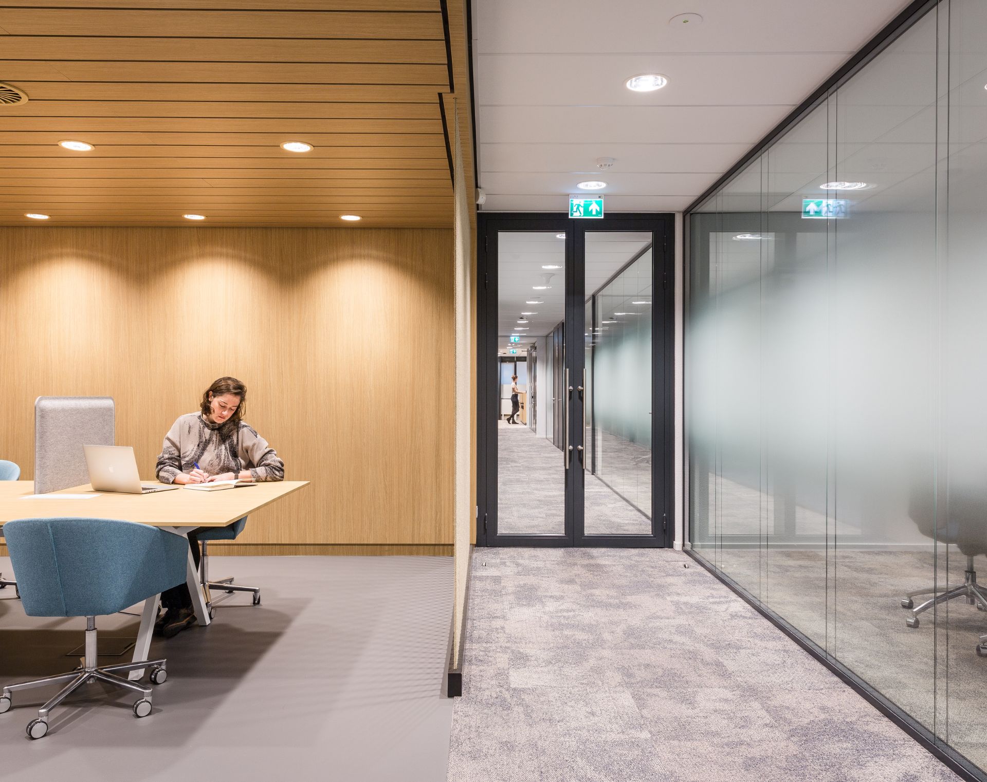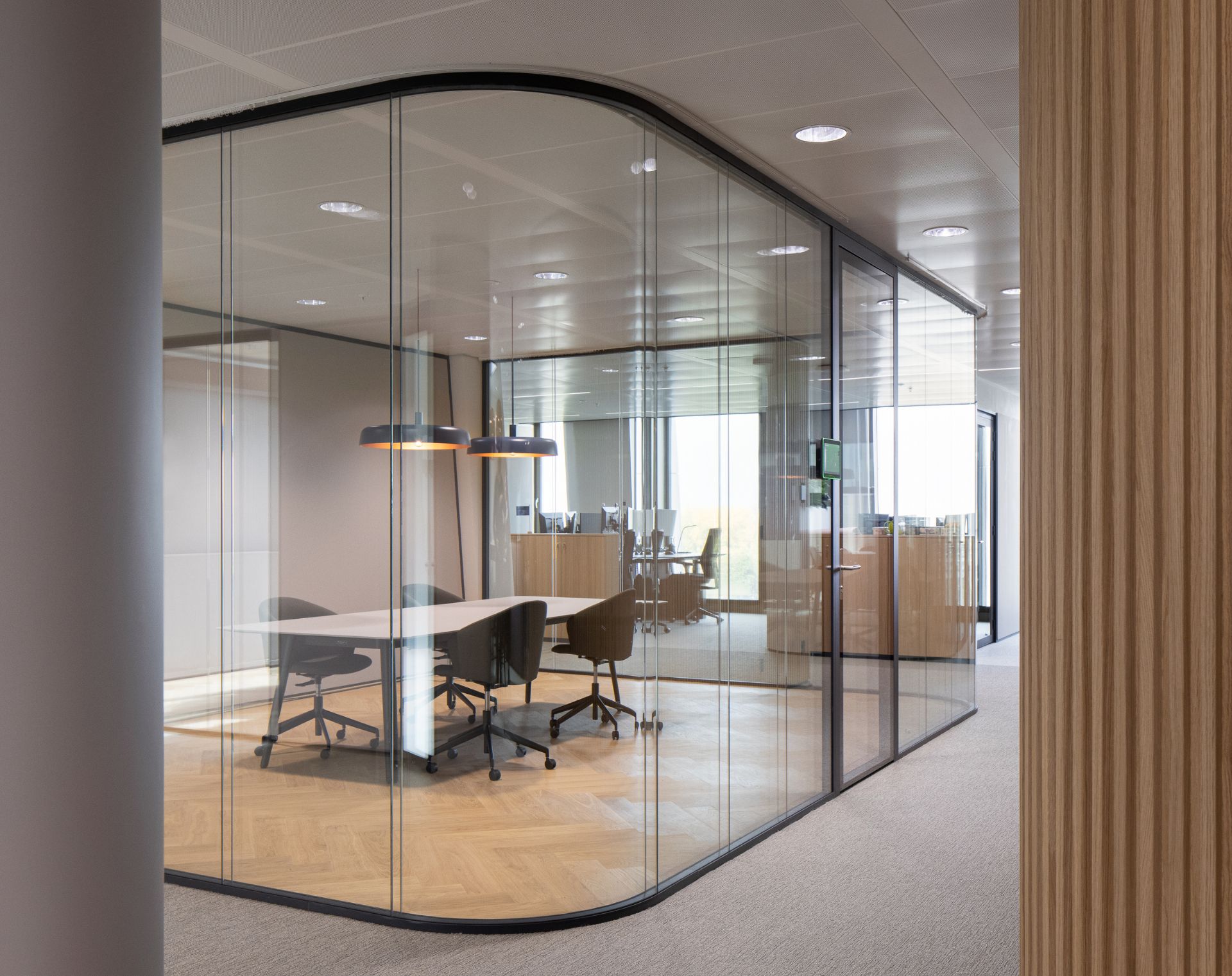 SERENITY ist unser hochwertiges Doppelglas-Wandsystem, das für optimale akustische Leistungen und visuelle Transparenz entwickelt wurde. Durch die klaren Profile und die edle Ausführung passt SERENITY perfekt in moderne Büroumgebungen, in denen Privatsphäre, Ruhe und Lichteinfall wichtig sind. Das System kann mit verschiedenen Glasstärken ausgeführt werden und bietet eine Schalldämmung von bis zu Rw 47 dB – ideal für Besprechungsräume, Vorstandsbüros und Ruhezonen.