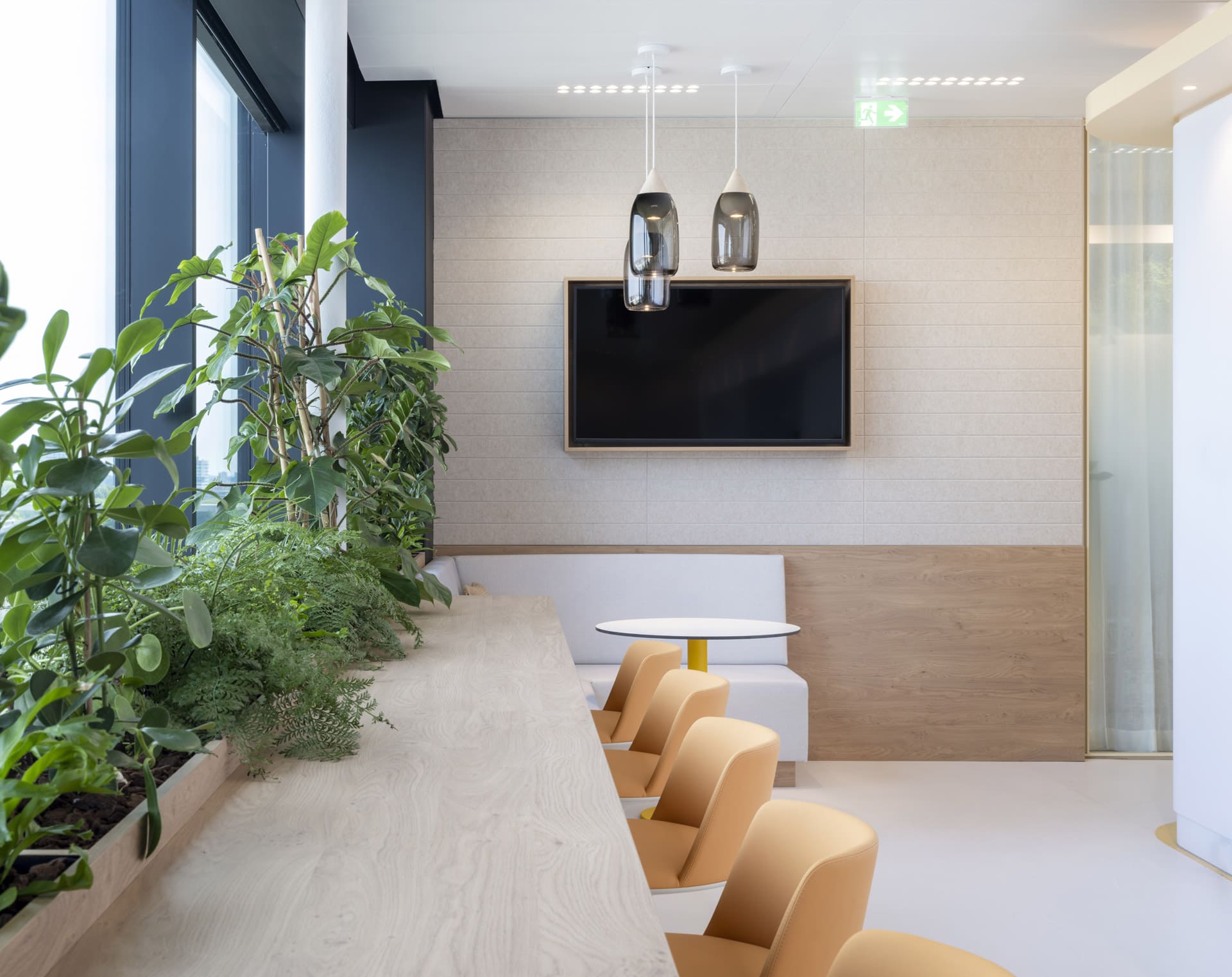 Für dieses Büro wurde das einzigartige „Office as a Landscape Concept“ von D/Dock entwickelt. Das Interior-Design verbindet Landschaftsarchitekturen: Jede Etage repräsentiert eine andere natürliche Landschaft, wie Wüsten, Wälder, Felder und Berge.
