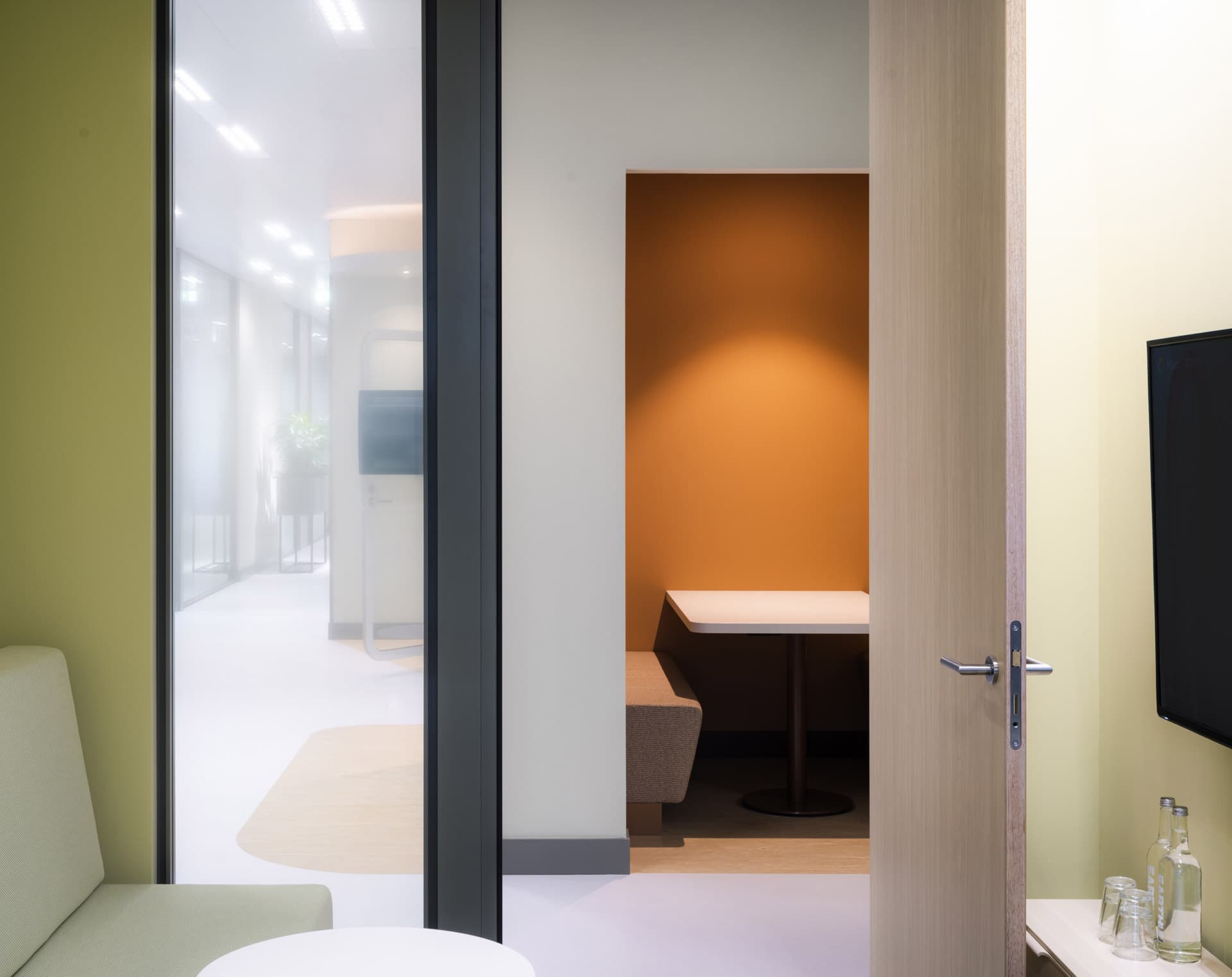 Die Mitarbeitenden von JetBrains können ihren Arbeitsplatz personalisieren und ihren Tagesrhythmus selbst gestalten – dank individuell einstellbarer Arbeitsplätze und Teamräume. Im gesamten Konzept wurde die TEN Einfachverglasungswand in Kombination mit HPL-Türen und Rahmentüren gewählt. Passend zu allen Themen der verschiedenen Etagen ist die TEN Glaswand in nicht weniger als zehn unterschiedlichen RAL-Farben zu sehen. Mit dem TEN Wandsystem schafft man in jedem Büro ein großzügiges und offenes Raumgefühl. Es verstärkt das Landschaftserlebnis in jeder Bürozone zusätzlich!