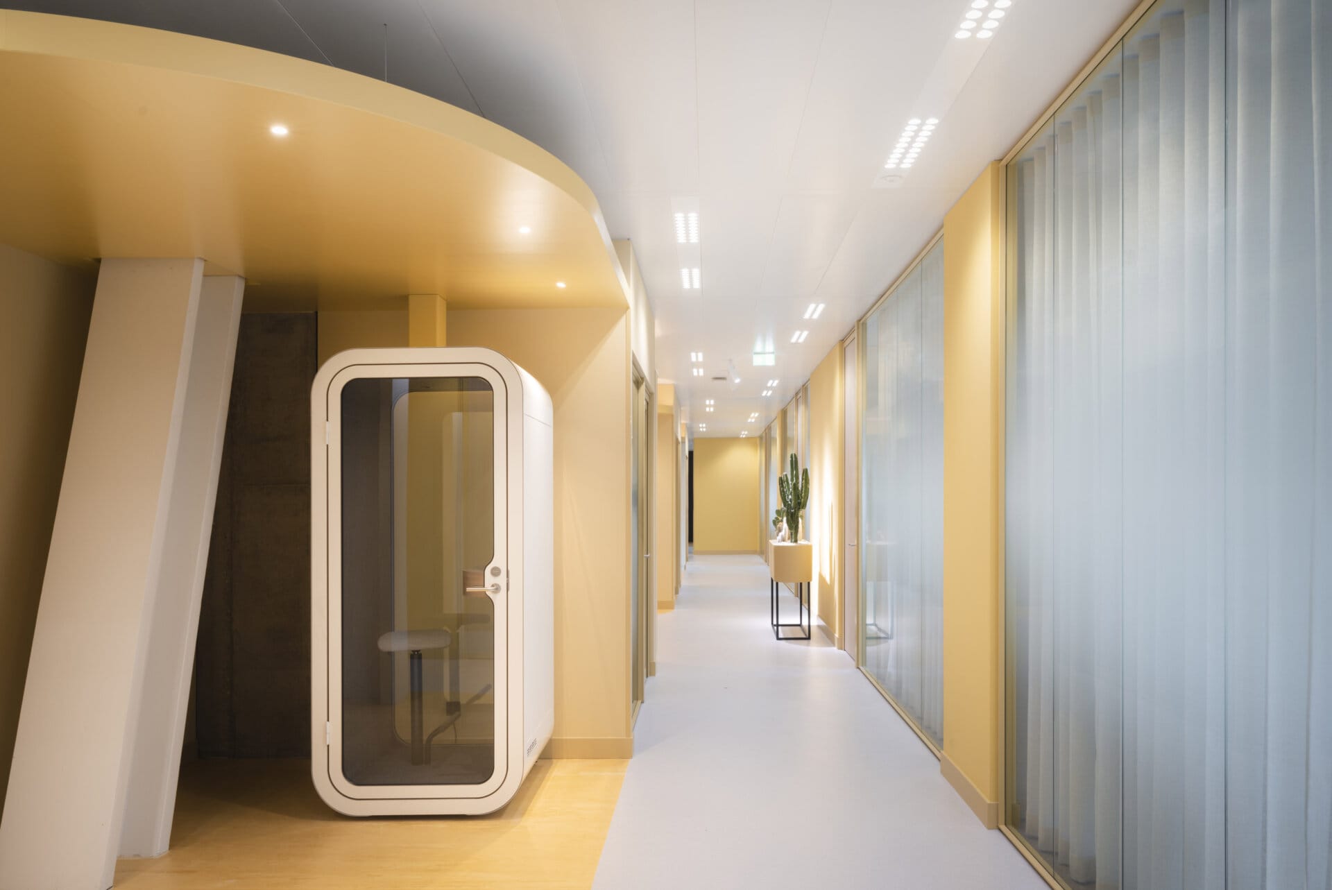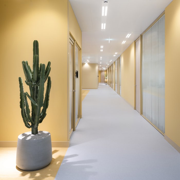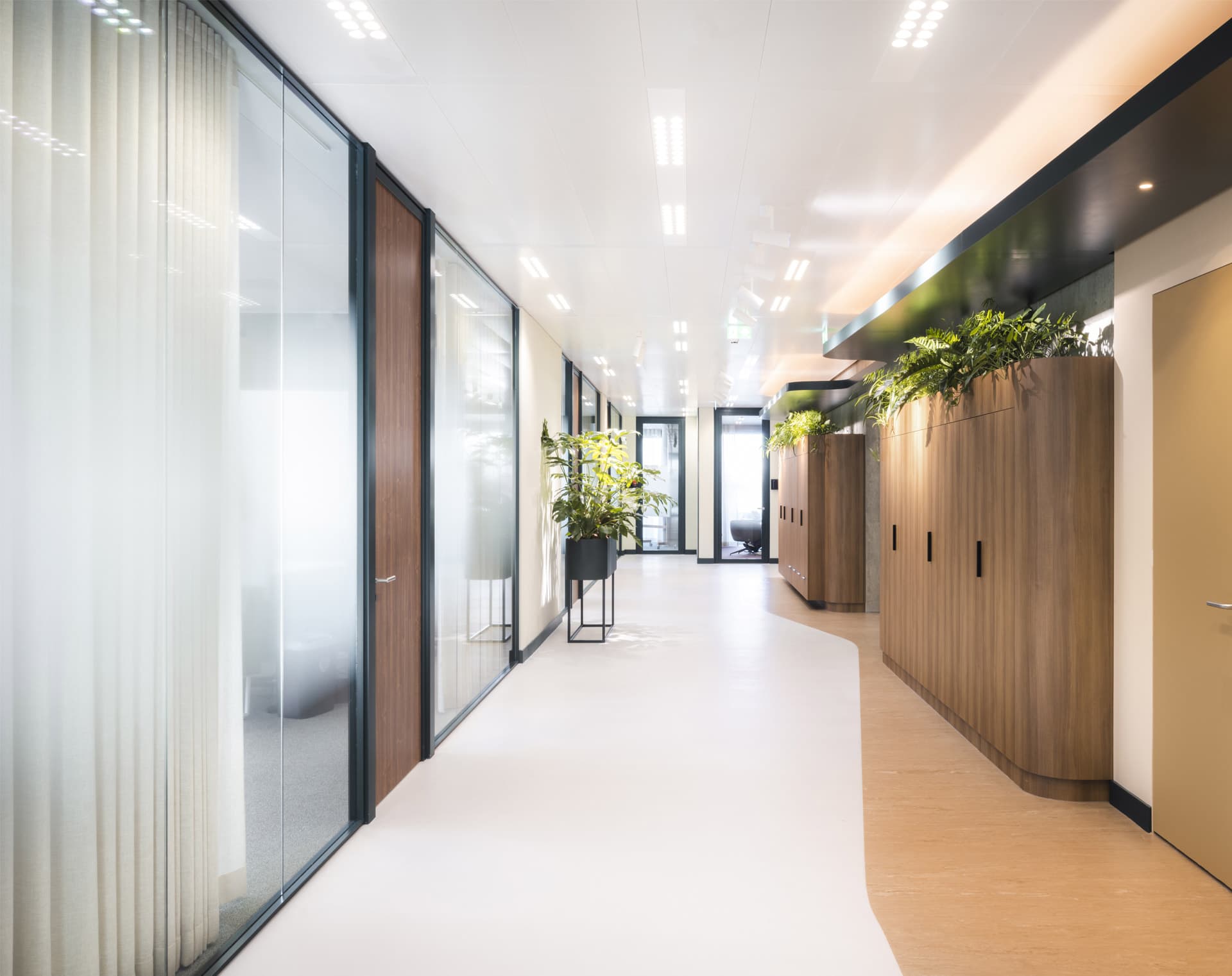 Die TEN Einfachverglasungswand trägt das hochwertige Cradle to Cradle Silver Zertifikat und fügt sich damit ideal in die nachhaltige Arbeitsumgebung von JetBrains ein.